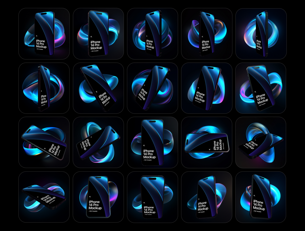 Dive into the future of digital presentation with the Spectrum – a meticulously curated collection of iPhone 14 Pro mockups set against mesmerizing holographic backgrounds. Compatible with Adobe Photoshop and designed for seamless editing, this pack is your essential tool for creating a striking impression in a digital-first world.